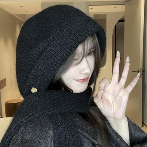 2025年冬季新款纯色针织帽子女围巾一体巴拉克拉法帽防寒加厚保暖