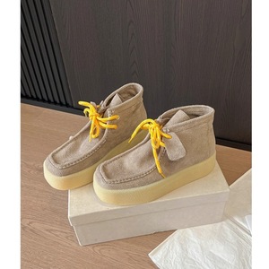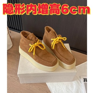 现货~增高6cm复古拼色厚底雪地靴女2025秋软底绒面不累脚增高系带