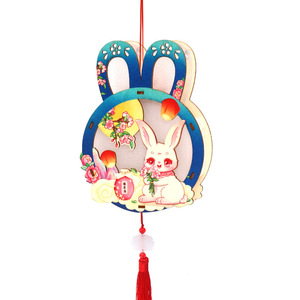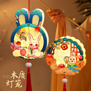 木质灯笼中秋节彩印卡通灯笼儿童手工制作古风花灯diy材料包中秋