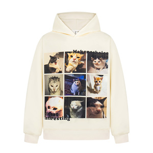 【破镜】 25秋季New美式复古创意搞怪小猫连帽套头卫衣