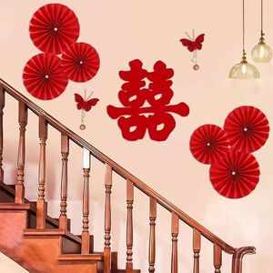 大中小扇花6个+吊坠金粉蝴蝶2个+40双喜