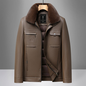 莱诗伯特2025冬季新款白鸭绒皮羽绒服男中长防寒大保暖羽绒服外套