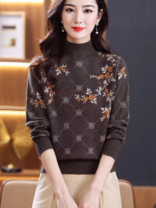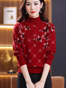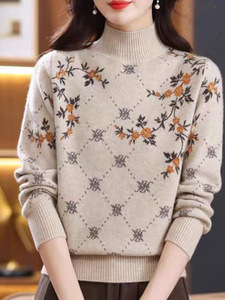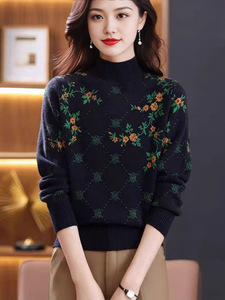 羊绒毛衣女25新款秋冬半高领打底衫女加厚针织衫内搭提花宽松上衣