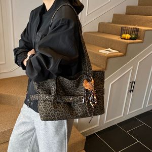 休闲大容量豹纹包包2025新款轻便百搭女式通勤单肩包松弛感托特包
