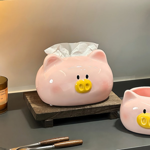 可爱萌猪猪纸巾盒客厅纸抽盒陶瓷抽纸盒家用茶几摆件创意餐巾纸盒