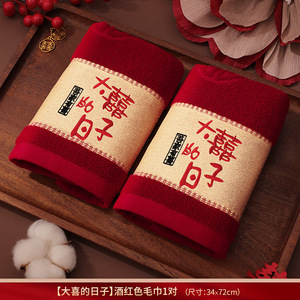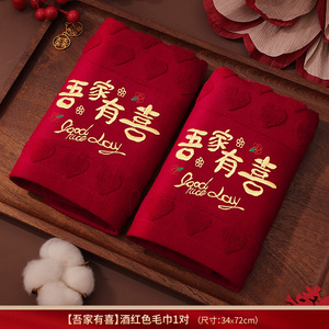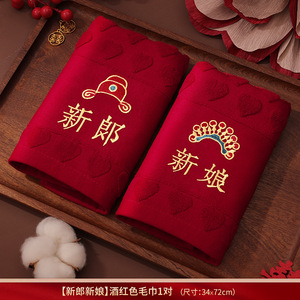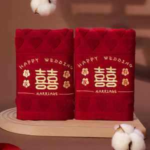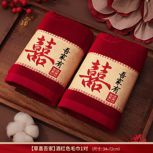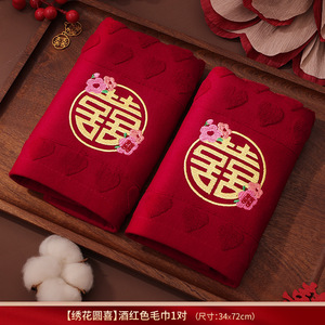 结婚红色毛巾一对新婚情侣陪嫁回礼品喜字洗脸巾家用婚庆用品大全