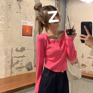 小众设计感白色长袖T恤女2024秋季修身小心机纯色ins短款上衣潮