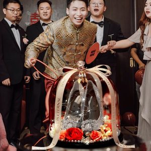 结婚礼藏婚鞋盒套圈带锁接亲堵门小游戏拍照道具水晶盒子婚庆用品