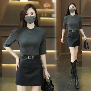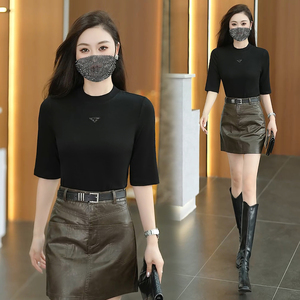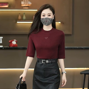 2025春秋新款时尚五分袖打底衫女士气质修身显瘦百搭休闲圆领T恤