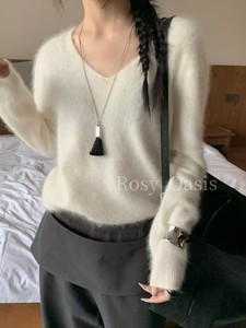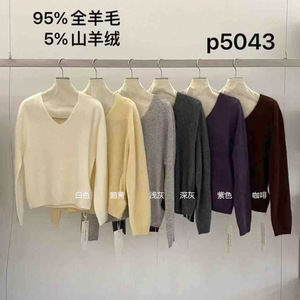 法式V领软糯山羊绒毛衣一秋季爆款95%羊毛绝美紫色针织衫女P5043