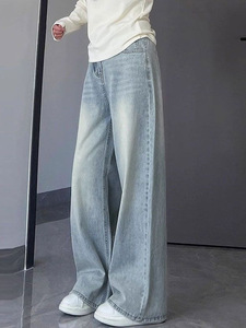 浅色阔腿牛仔裤显瘦梨型身材粗腿宽胯大码胖mm女生裤子韩系慵懒风