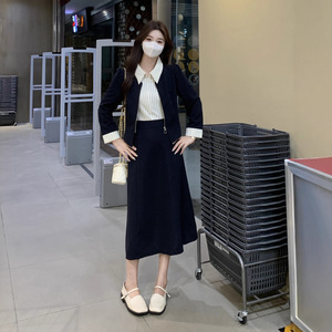 法式气质长袖假三件套连衣裙女秋季新款大码胖mm收腰显瘦通勤长裙