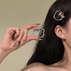 甜美可爱粉色水钻甜美KT猫侧边刘海夹新款甜妹百搭发卡