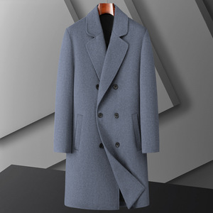 双排扣男式大衣2025秋冬中长款青年商务单面呢羊毛保暖休闲厚外套