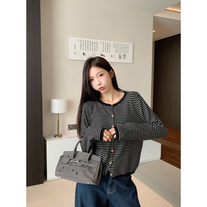 实拍 秋季韩版温柔百搭圆领纽扣针织开衫外套宽松长袖女上衣88347