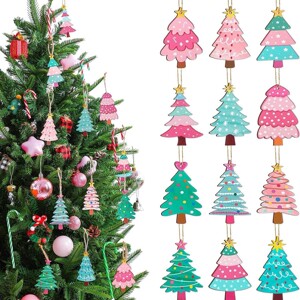 跨境新品12件圣诞节创意多彩圣诞树暖心家居木质装饰派对挂件
