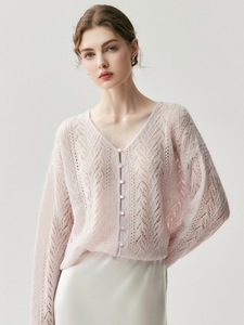 宽松温柔~气质真丝山羊绒开衫2025秋冬新款V领镂空女针织外套毛衣