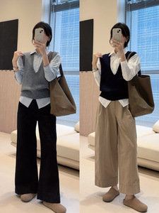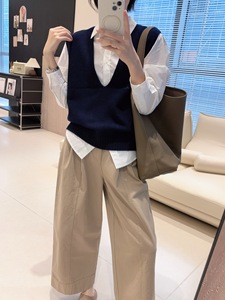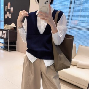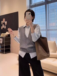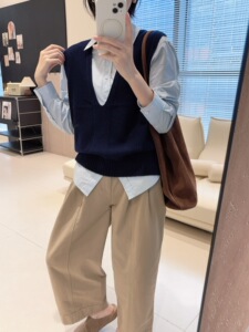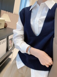 【叠穿大神】大V领定染100%羊毛保暖马甲宽袖口无袖针织坎肩早秋