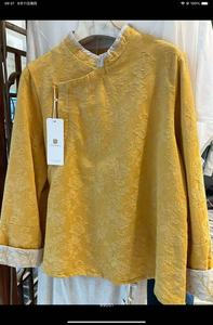 2025秋冬棉麻混纺纯色立领女上衣文艺串线斜襟中式女士卷边袖T恤