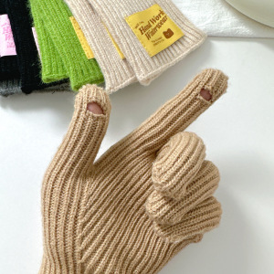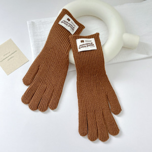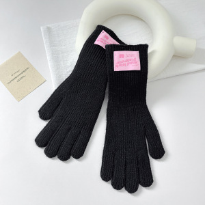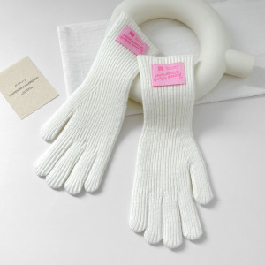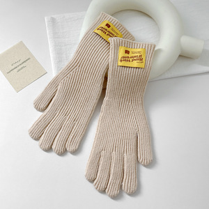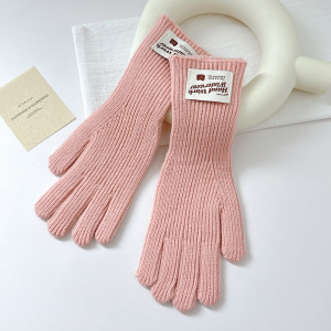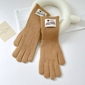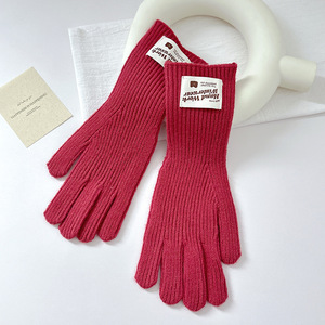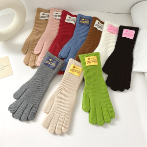 韩标长款针织手套秋冬防风五指保暖骑行滑雪情侣款触屏手套批发