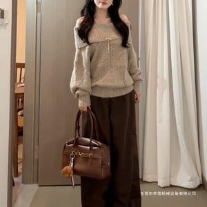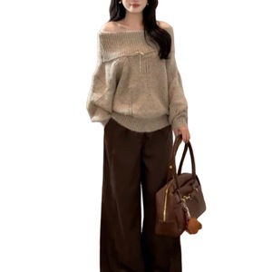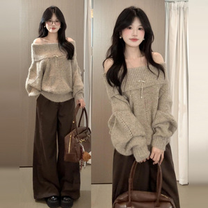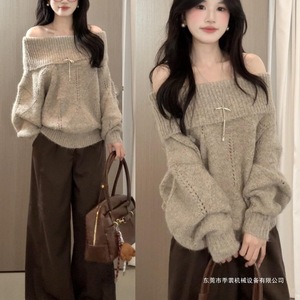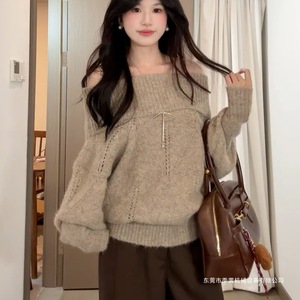 一字肩针织毛衣女秋冬2025年早秋季慵懒风感收腰显瘦内搭上衣