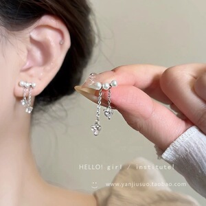 19#链条流苏珍珠吊坠耳钉【两戴款】