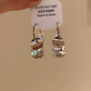 31#银色圆片方糖锆石吊坠C圈耳钉