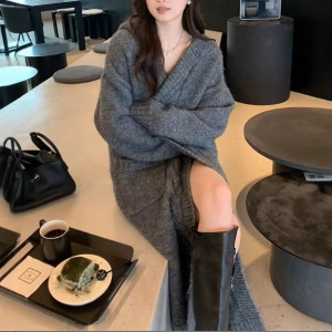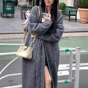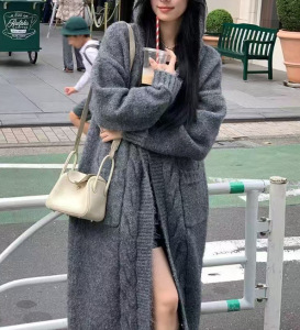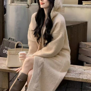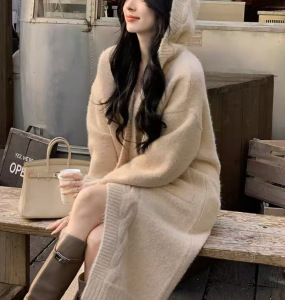 PH51828大爱美依缘2025秋季新款大衣宽松慵懒风连帽长款过膝开衫