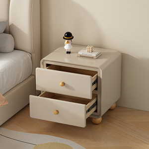 实木烤漆床头柜简约现代轻奢高级感奶油风家用卧室小型床头收纳柜