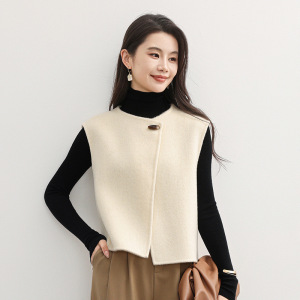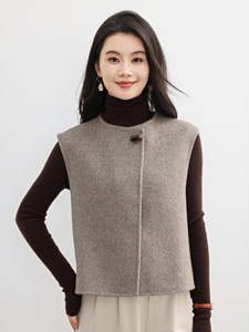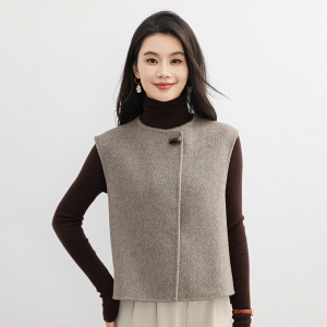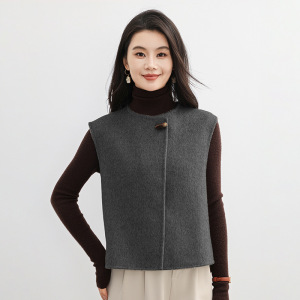 通勤灰色斜门襟圆领羊毛马甲女2025春秋季新款时尚洋气呢子坎肩女