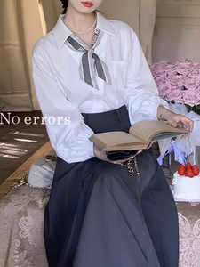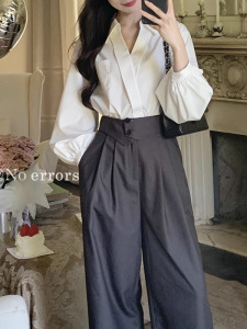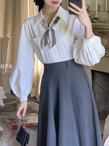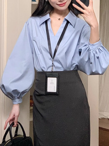 不出错No errors职场天菜气质干练v领灯笼袖衬衫 秋新款