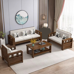 中式实木沙发简约客厅冬夏两用黑胡桃小户型出租屋窄木质复古沙发