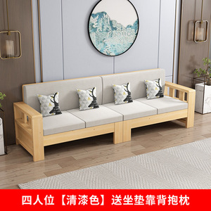 四人位清漆色 送棉麻坐垫靠背抱枕