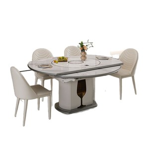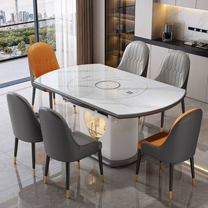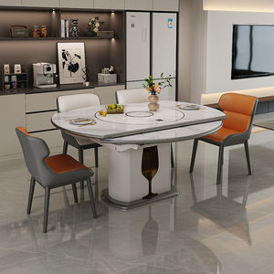 方圆两用智能暖菜板岩板餐桌家用小户型可伸缩折叠带转盘电磁炉桌