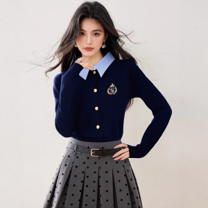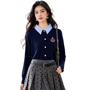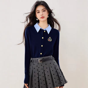 假两件polo领长袖针织打底衫女秋装2025年早秋季新款内搭毛衣上衣