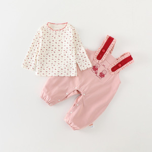 女宝宝背带裤套装夏季韩版婴幼儿可爱外穿上衣背带裤两件套