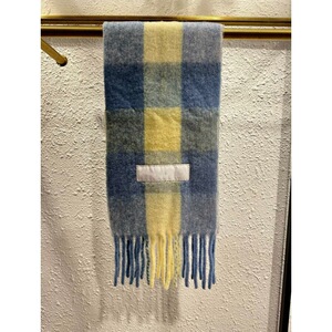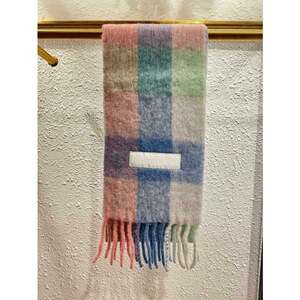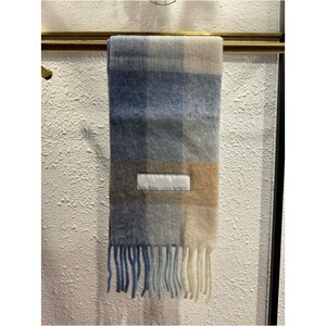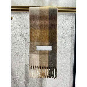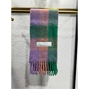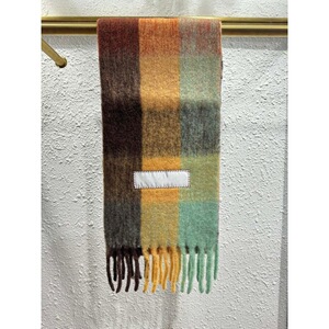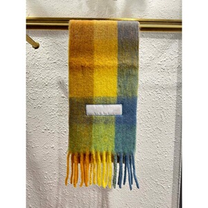 AC秋冬新款马海毛围巾彩虹格子拼色流苏羊毛披肩男女同款情侣围脖