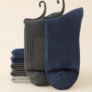 男士黑色商务中筒袜秋冬季纯棉双针加厚防臭长袜透气耐磨批发直供