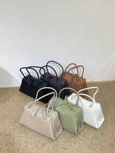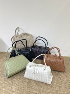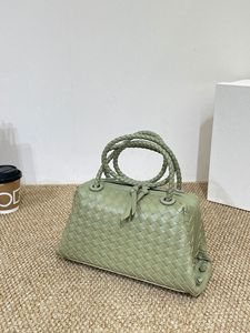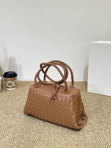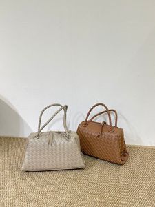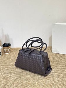 小众编织跨境新款高级感真皮波士顿枕头包中古编织单肩腋下包包女