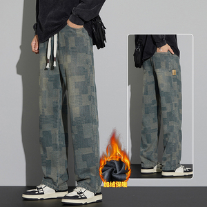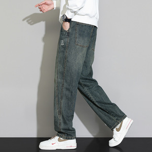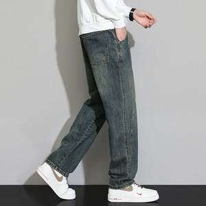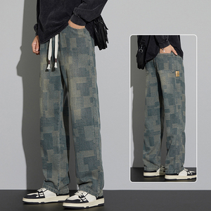 牛仔裤男士宽松直筒美式潮牌2025春秋新款复古拼接水洗休闲长裤子