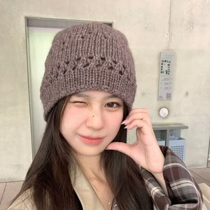 韩系镂空羊毛混纺毛线帽女秋冬时尚休闲针织帽百搭显脸小套头冷帽