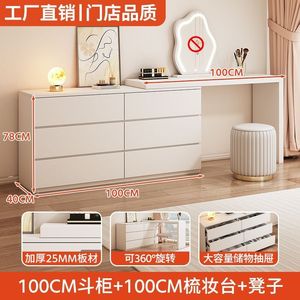 梳妆台收纳柜斗柜一体家用卧室现代简约小户型可伸缩奶油风化妆桌