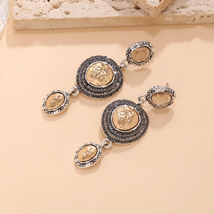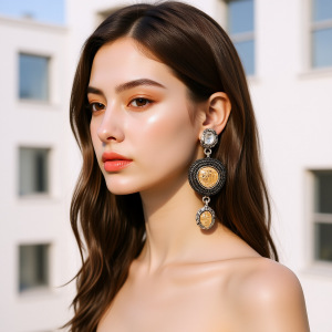 ZA复古宫廷风长款镶满钻几何耳坠时尚百搭异形合金耳环女跨境耳饰