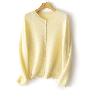 拉毛羊毛衫女针织开衫秋款女装拉绒毛衣外套圆领5山羊绒95羊毛
