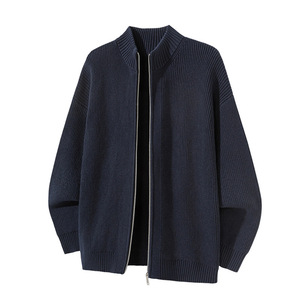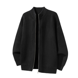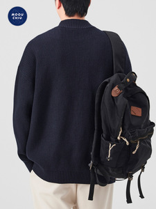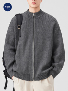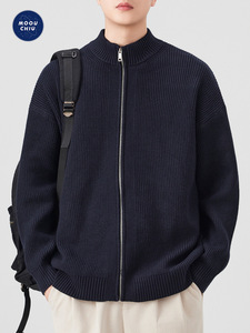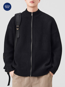 沐丘男装∣潮牌美式立领开衫拉链毛衣男宽松通勤慵懒风针织衫外套