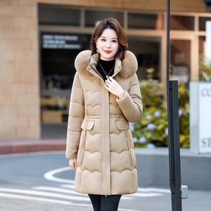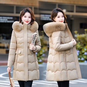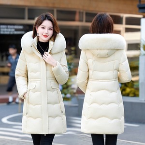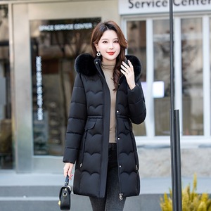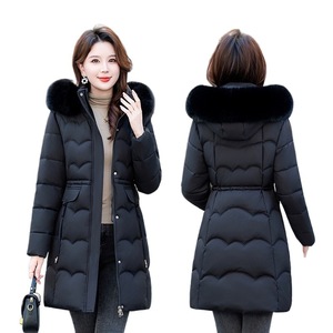 2025外贸新款大毛领棉衣女中长款修身显瘦时尚简约棉衣棉袄外套潮