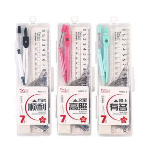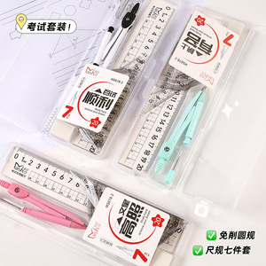 学生励志圆规套装 初中生专用圆规尺子七件套多功能文具用品批发