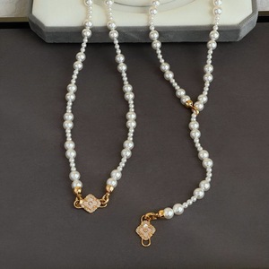 加长款白贝母花朵扣满天星施家珍珠项链小众秋冬款多层叠戴毛衣链