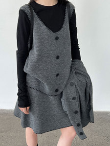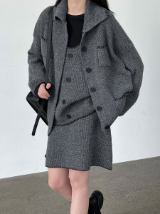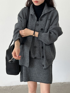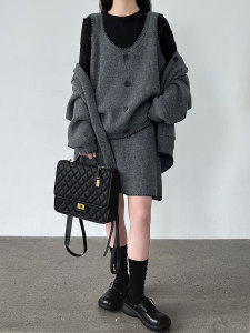 NS韩系针织开衫外套+背心短裙三件套女25秋季新款慵懒风套装ss777
