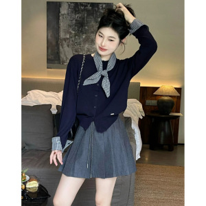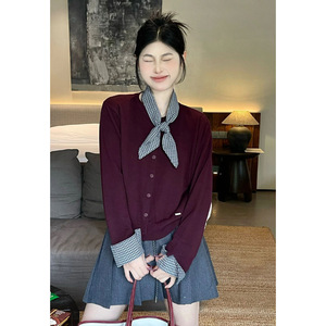 早秋新款假两件圆领毛衣外套女装2025韩系高级感气质针织开衫上衣